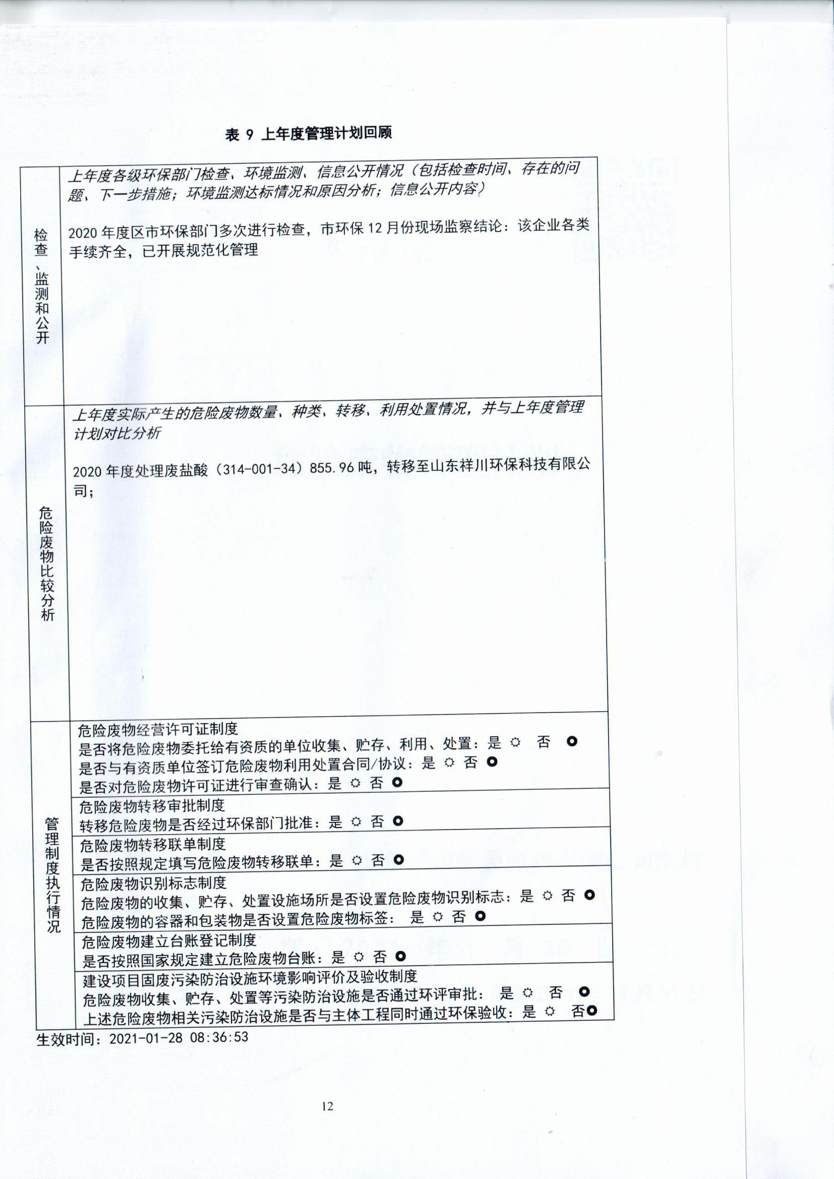 B体育官方开户浩祥分公司2021年度危险废物管理信息公开