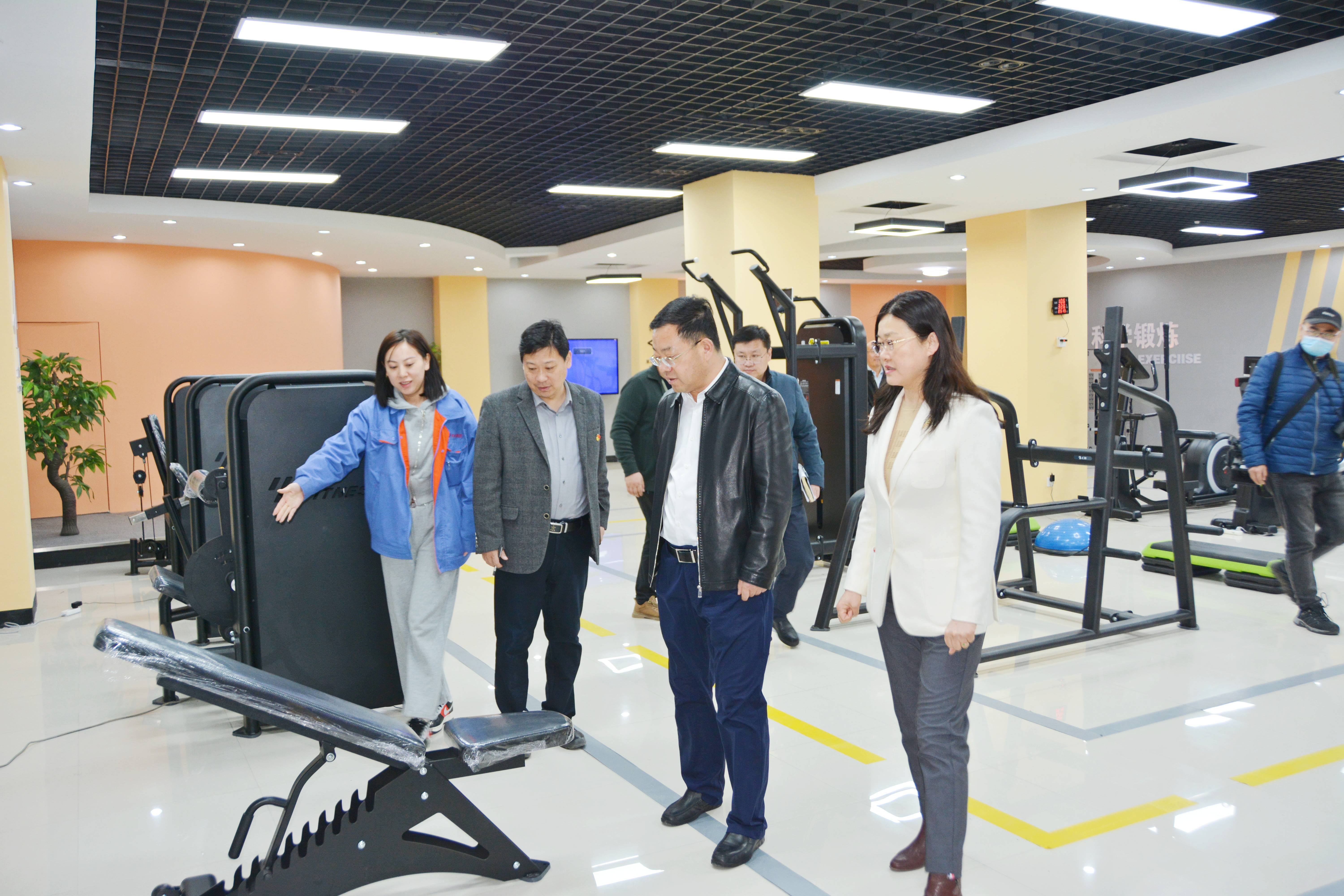 路德芝书记参观了祥和集团公司产品展厅,对汇祥健身器材新开发的康养器械和智能健身整体解决方案样板间进行了解,认真听取新产品开发、新模式营销的工作思路汇报。